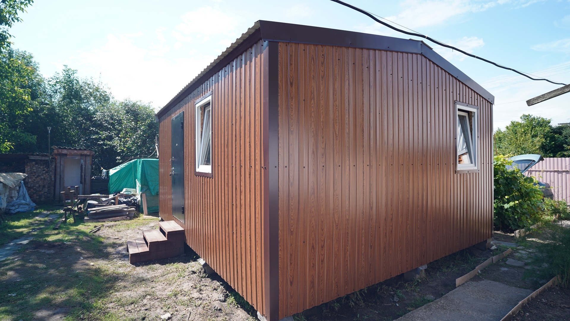 Крыша - двускатная, покрытие профнастил